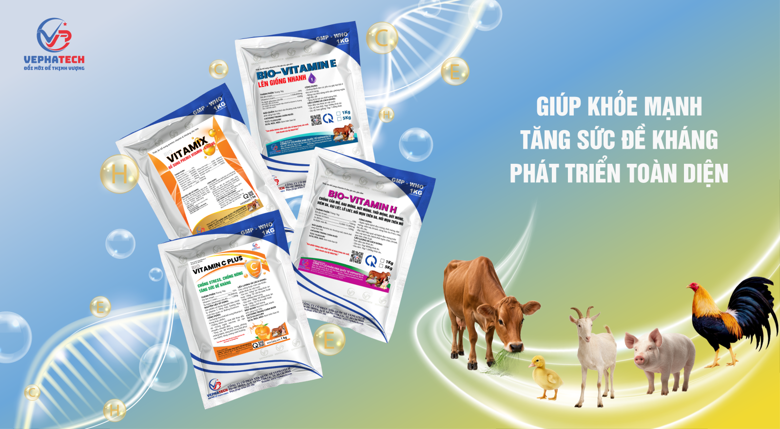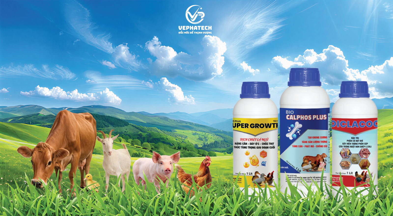 Công ty Cổ phần Xuất Nhập Khẩu Quốc tế Vephatech là đơn vị hàng đầu trong lĩnh vực cung cấp thuốc thú y, thuốc thủy sản và chế phẩm sinh học dành cho gia súc, gia cầm. Với mục tiêu nâng cao năng suất chăn nuôi và bảo vệ sức khỏe vật nuôi, Vephatech mang đến các sản phẩm chất lượng cao, an toàn và hiệu quả, được kiểm định nghiêm ngặt theo tiêu chuẩn quốc tế.